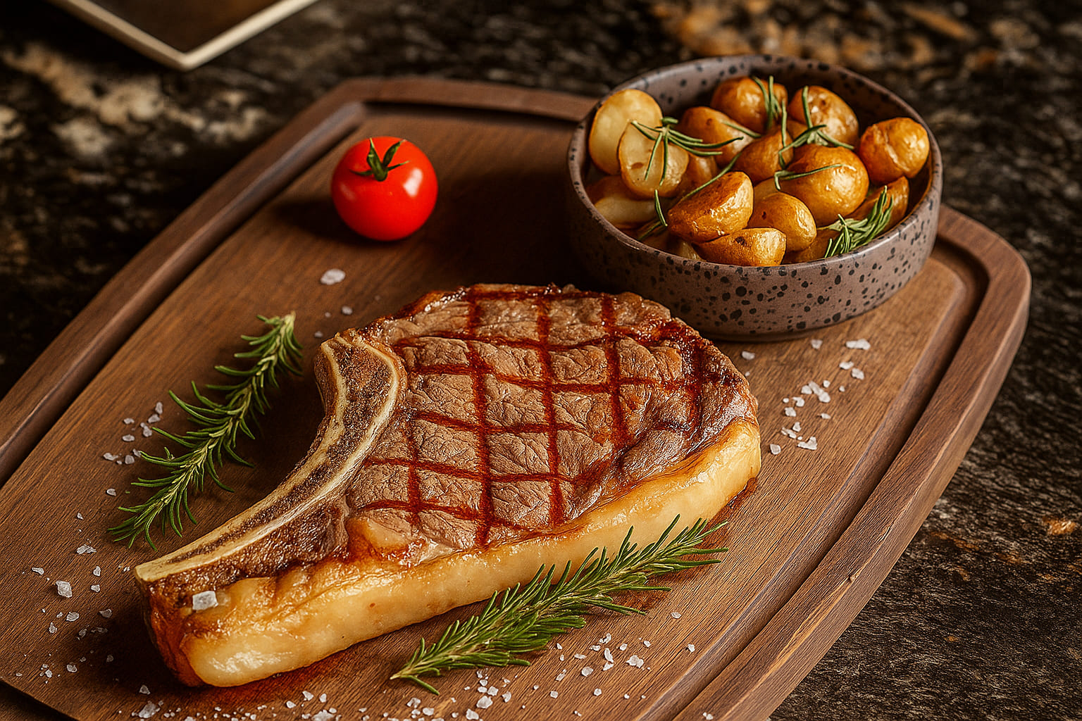 Эффектное блюдо на длинной кости. По сути, это рибай, но большего размера.