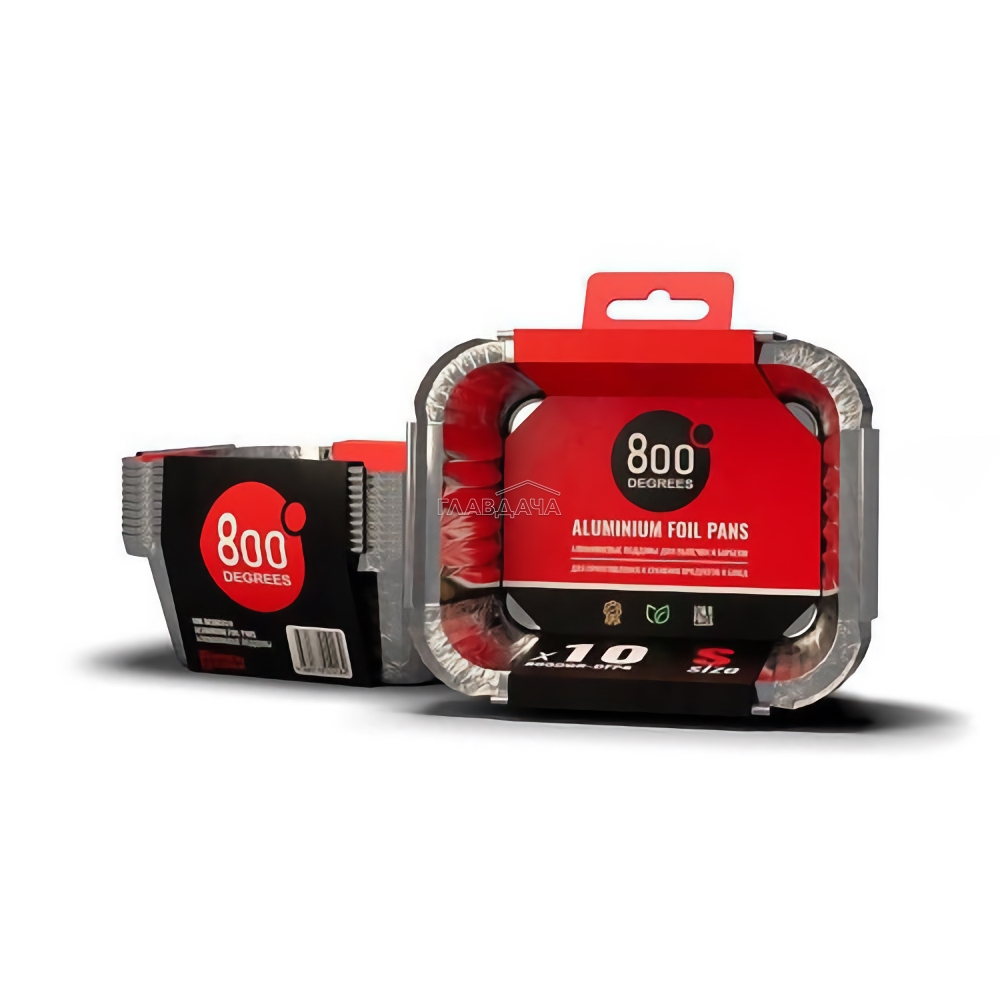 Алюминиевые поддоны 800 Degrees предназначаются для запекания, готовки и хранения пищевых продуктов, а также в качестве жиросборника для грилей и мангалов всех типов — когда поддон заполнится, его можно утилизировать и заменить новым, чтобы не тратить время на отмывание. Поддоны поставляются упаковками по 10 штук.