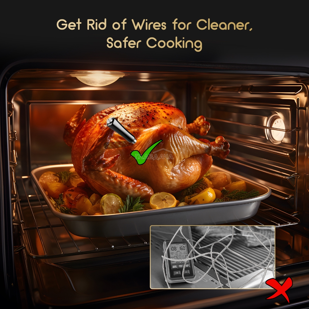 Больше никаких проводов! Термометр идеален для приготовления на вертеле.