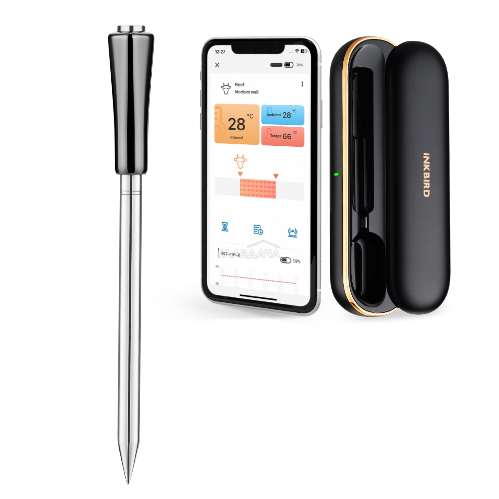 Inkbird INT-11P-B – беспроводной термометр с зарядным футляром. Избавьтесь от путаницы проводов при приготовлении пищи. Удалённо контролируйте процесс приготовления в барбекю, грилях, коптильнях, духовых шкафах и многом другом.