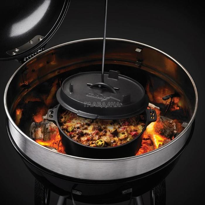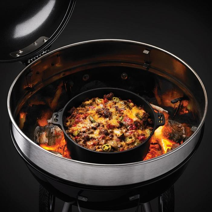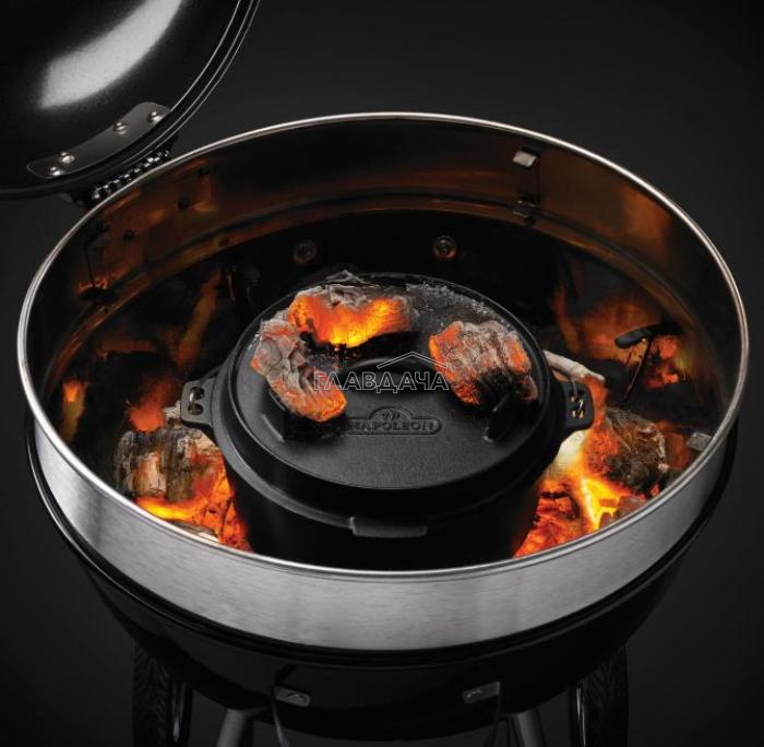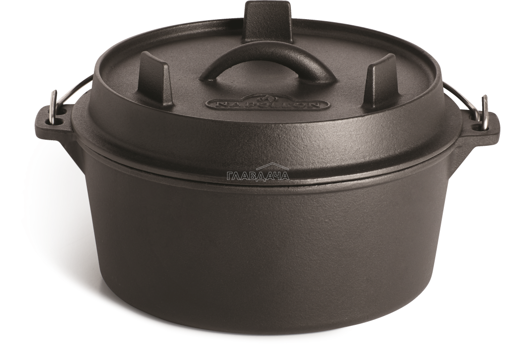 Чугунная голландская печь Napoleon отлично подходит для приготовления овощного рагу, супов, запеканки и тушения мяса. Можно использовать для выпечки хлеба. Чугун – это великолепный материал, который будет поглощать и равномерно удерживать тепло как от угля, так и от газа. Крышку можно использовать отдельно как чугунную сковороду, чтобы поджаривать бекон, бутерброды, готовить ароматные куриные грудки и овощи. Бортик по периметру крышки для удержания угля сверху.