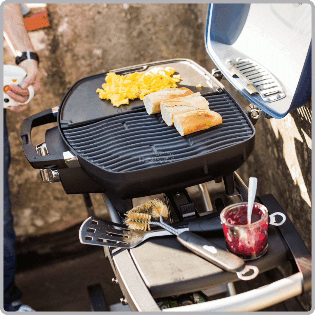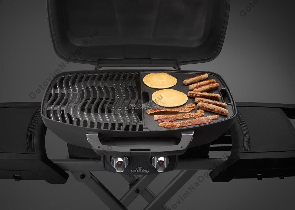 Двухсторонняя чугунная планча для гриля Napoleon TravelQ 285 имеет c одной стороны гладкую, а с другой ребристую поверхность. На данном аксессуаре Вы можете готовить восхитительные завтраки: жарить яичницу, блины, купаты, бекон; делать сэндвичи, бургеры, стейки. Это большая и удобная чугунная планча с огромными возможностями. В планче предусмотрены отверстия для избыточного сока от готовящихся продуктов.
