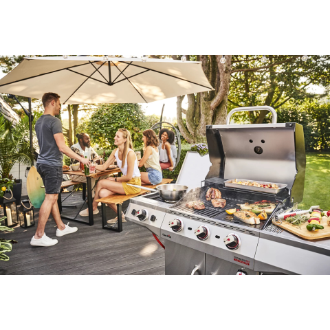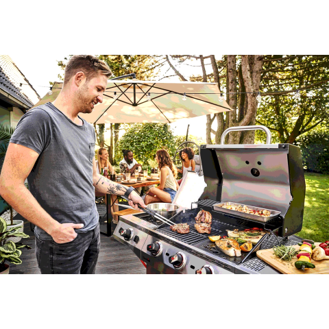• Быстрый старт. Никаких углей, розжига или длительного ожидания — просто поворачиваете ручку, и гриль готов к работе за считанные минуты.