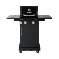 Две основные горелки из нержавеющей стали защищены отсекателями. Встроенный в крышку термометр позволяет легко контролировать температуру. Стальной корпус, покрытый черной эмалью, имеет просторную нижнюю полку для хранения газового баллона. Крупные колеса позволяют легко перемещать гриль по участку. Гриль запускается нажатием одной кнопки пьезоэлектрического поджига и уже через несколько минут готов к работе. Дополнительная решетка для разогрева продуктов из нержавеющей стали. Широкие боковые пристолья дают достаточно места для комфортной работы. Очень удобный выдвигающийся лоток жиросборника, который легко чистить.