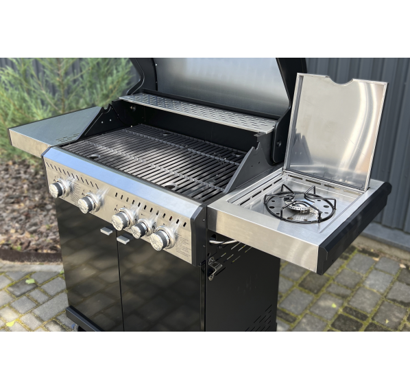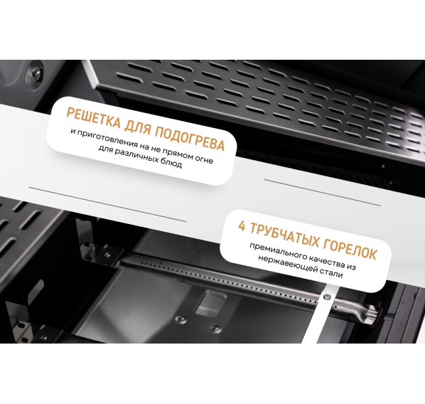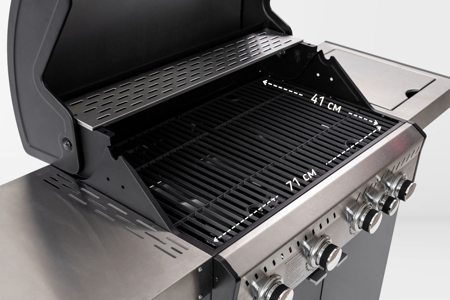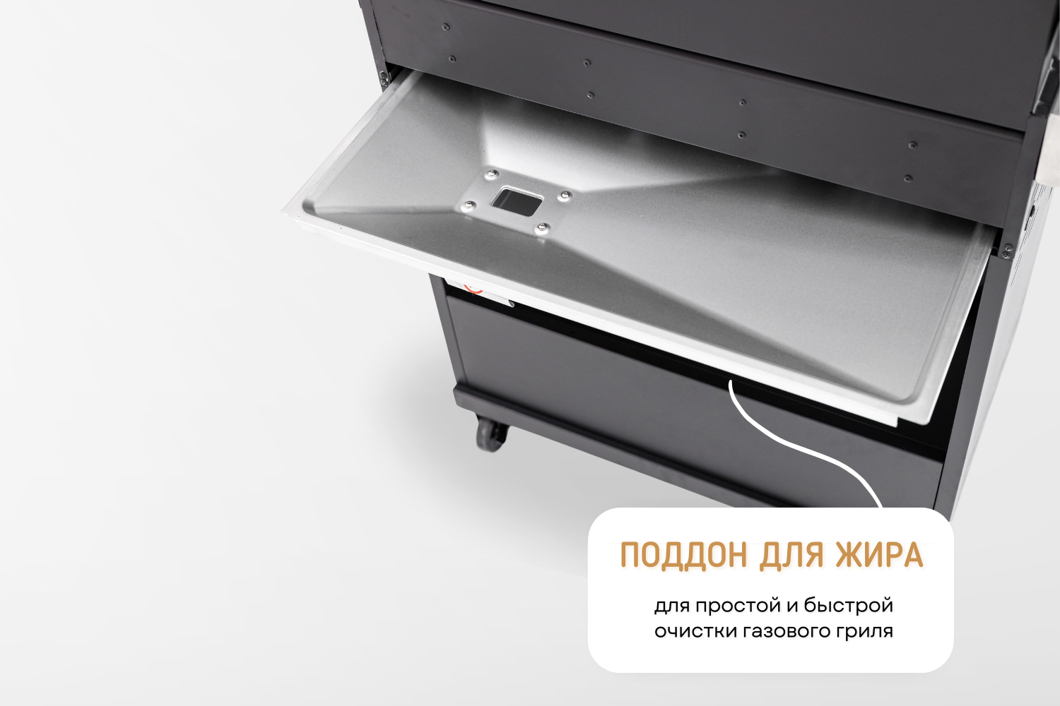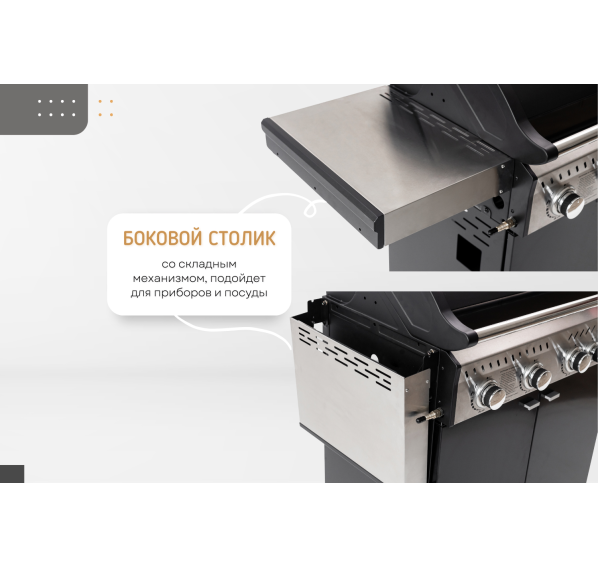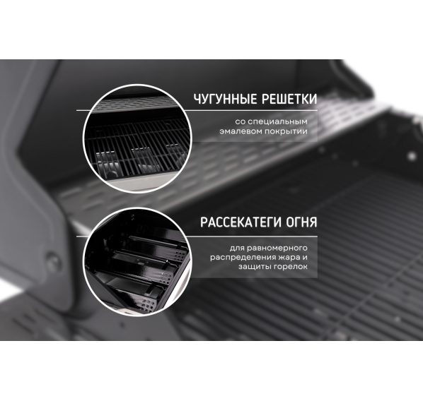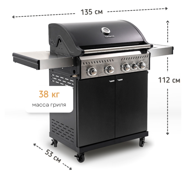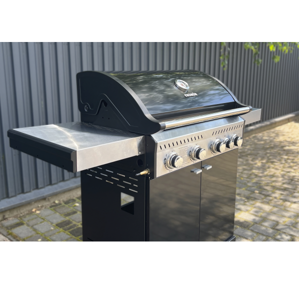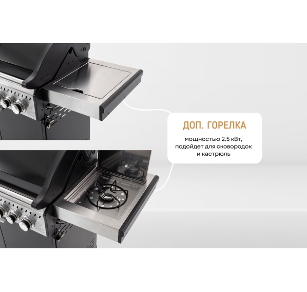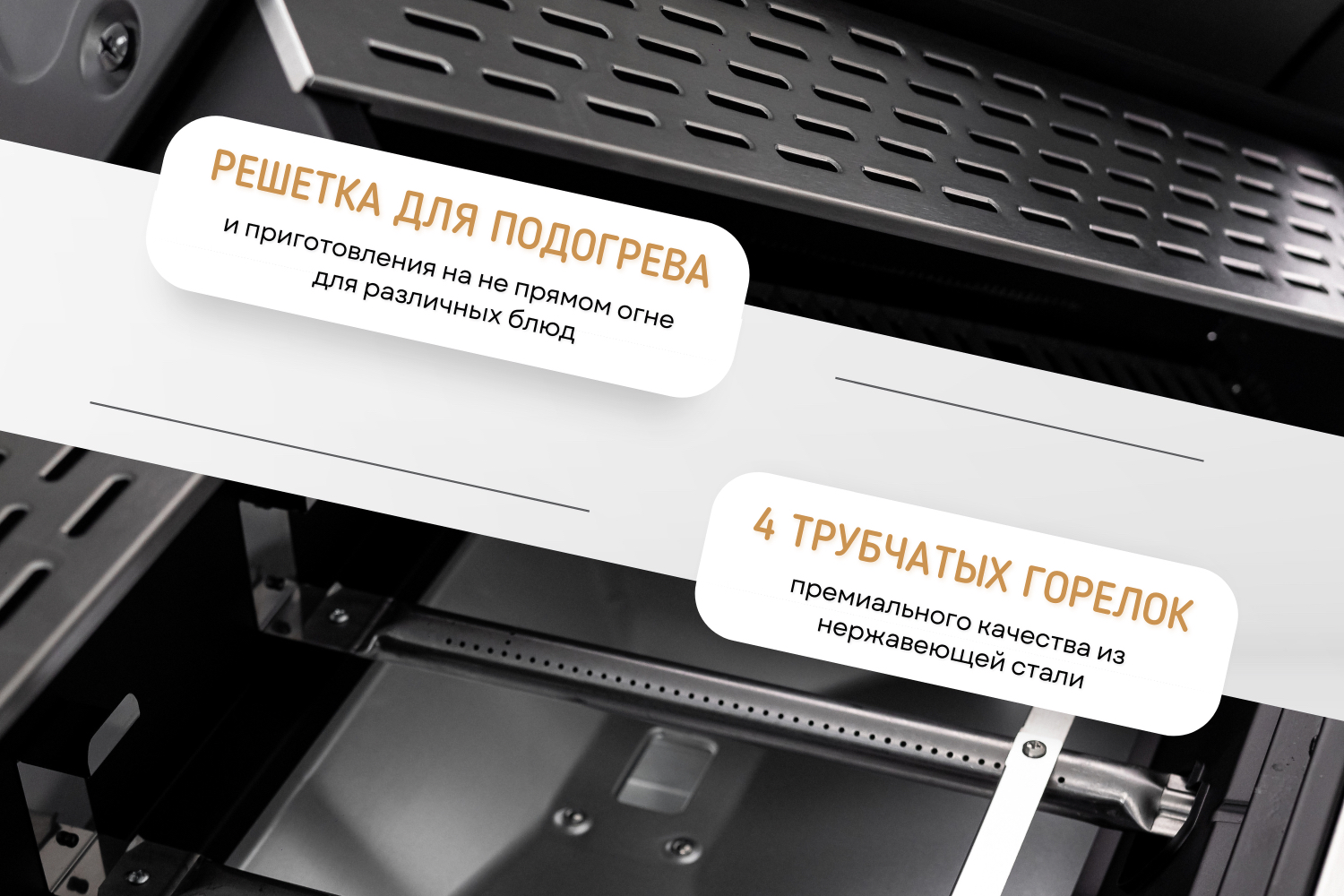 Этот гриль отличается элегантным дизайном, продуманностью конструкции полок и максимальной эргономичностью, позволяющей комфортно готовить блюда прямо на открытом воздухе. Оснащён встроенным термометром, удобным держателем для кухонных принадлежностей и системой автоматического розжига посредством пьезоэлемента. Универсальность гриля позволяет одинаково успешно справляться как с быстрой обжаркой мяса и овощей, так и с длительным процессом тушения и копчения продуктов.