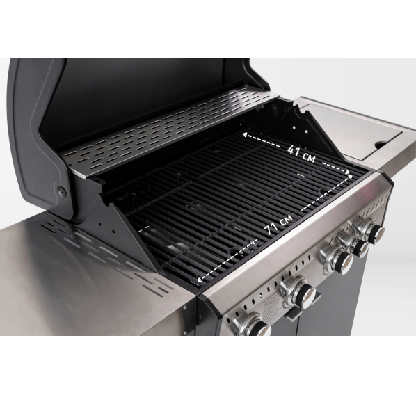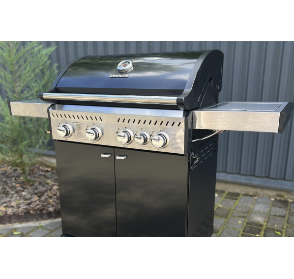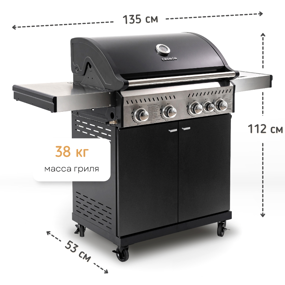 Газовый гриль Cronon Flame PB4-1S сочетает в себе высокую мощность, удобство и долговечность. Общая мощность 14,5 кВт и система из четырёх основных горелок и боковой конфорки позволяют готовить сразу несколько блюд — от сочных стейков и овощей на гриле до соусов и гарниров.