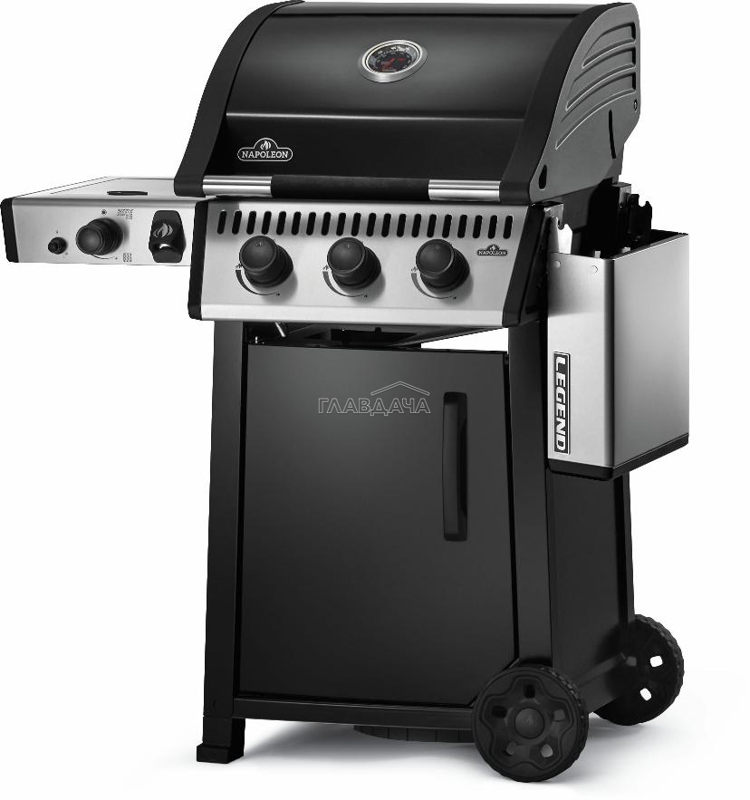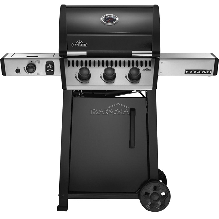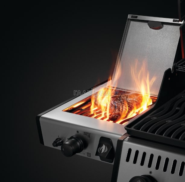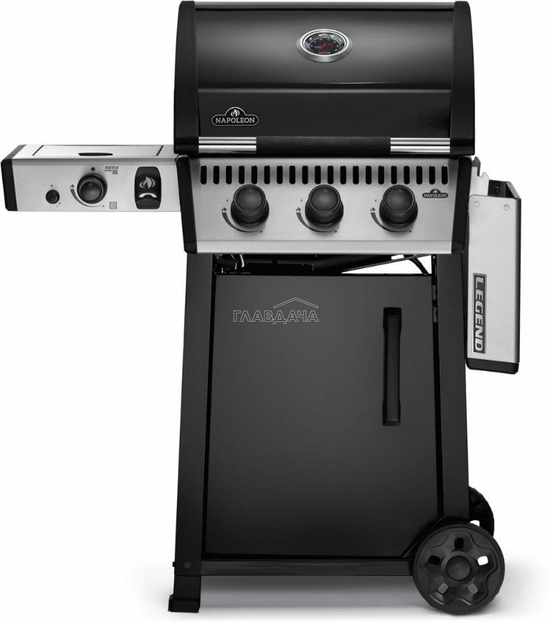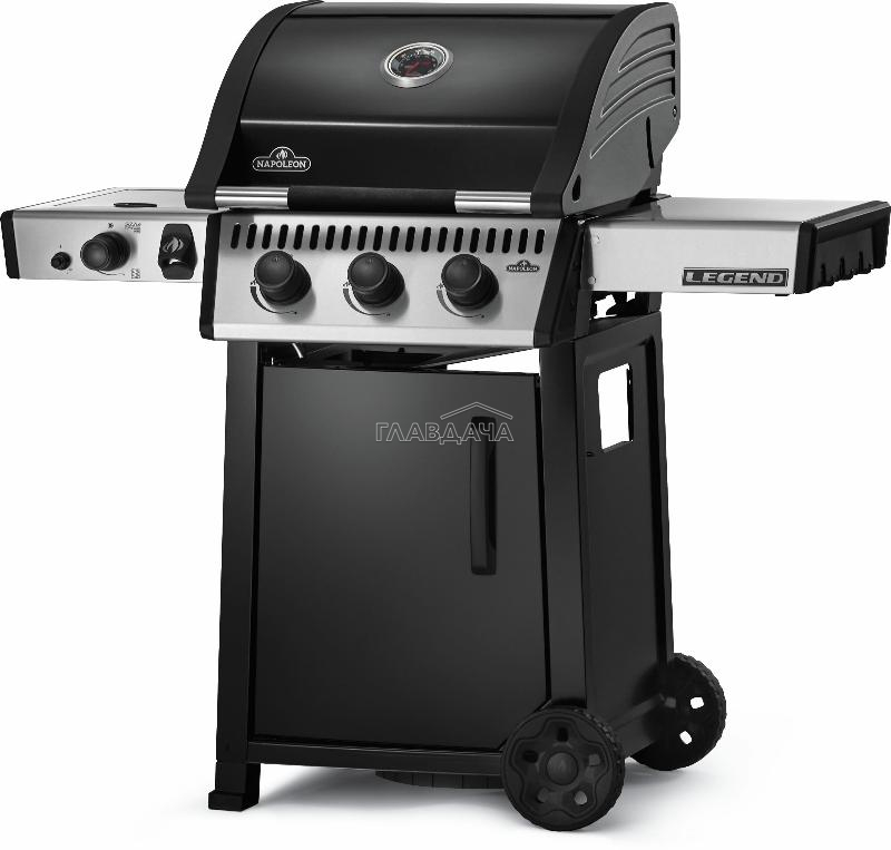 Стильное графитовое покрытие крышки гриля, ручка Soft-Touch, пластины-испарители с фарфоровым покрытием – отличительные особенности газового гриля Napoleon Legend 365 SIB.