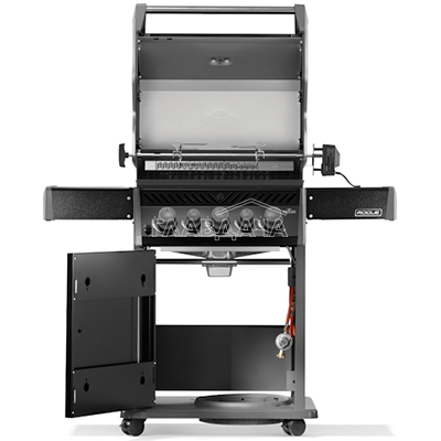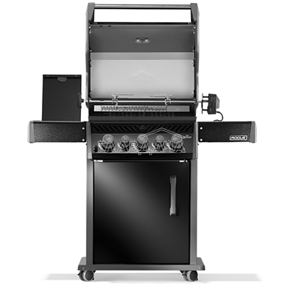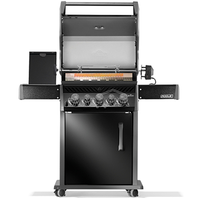 Инновации и высокое качество объединились в газовом гриле Napoleon Rogue 425 RSB – новинке 2022 года. В этом гриле есть всё необходимое для приготовления изысканных блюд: 3 основные горелки из нержавеющей стали, боковая конфорка и горелка для вертела. Вертел входит в комплект. Гриль Napoleon Rogue 425 RSB оснащён двусторонними чугунными решётками формы Wave с эмалированным покрытием Iconic, которое защищает их от ржавчины. Благодаря складным боковым столикам гриль не требует много места для хранения.