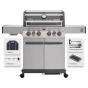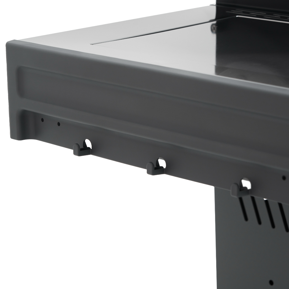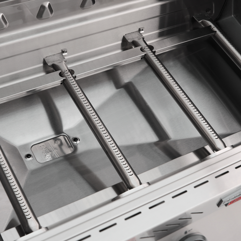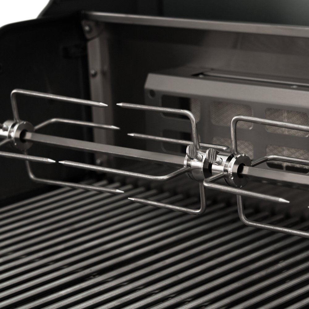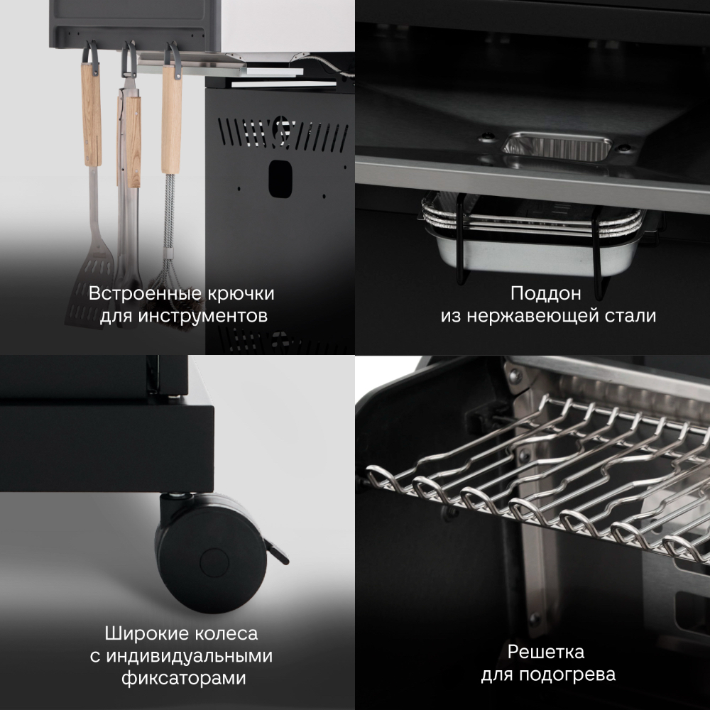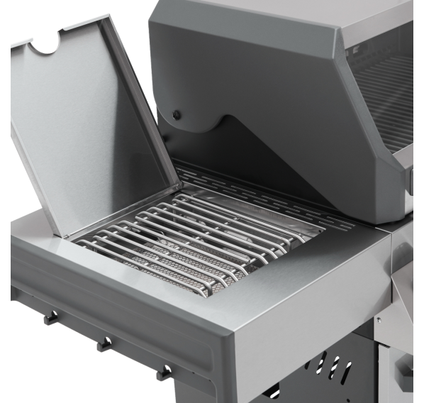 Главной особенностью модели является инновационное решение — большое панорамное стекло Clear Vision, выполненное из специального сверхпрочного закалённого материала. Благодаря этому окну владелец имеет возможность визуально контролировать процесс приготовления блюд прямо изнутри гриля, создавая незабываемые впечатления от процесса готовки. Primeliner S Class Pro 4B изготовлен исключительно из высококачественных материалов: корпус выполнен из прочной нержавеющей стали, отдельные элементы выполнены из литого алюминия, обеспечивая долговечность и устойчивость конструкции даже при интенсивном использовании. Гриль оснащён четырьмя мощными газовыми турбогорелками Blade, обеспечивающими равномерное распределение тепла и быстрый нагрев рабочей поверхности. Дополнительные опции включают увеличенную боковую инфракрасную горелку Broil Zone+, предназначенную для быстрой обжарки мяса и овощей, а также заднюю инфракрасную горелку, создающую идеальные условия для приготовления различных блюд. Особое внимание уделено комфорту пользователей: устройство оснащено встроенным модулем копчения Prime Smoker, позволяющим экспериментировать с ароматическими дымами, придавая блюдам особый вкус и аромат. Для удобства эксплуатации предусмотрен термостойкий защитный коврик на пристолье, предотвращающий повреждения.