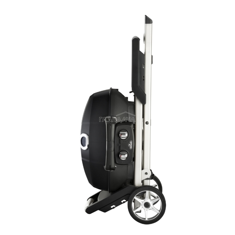 Складная тележка типа «ножницы» обеспечивают мобильность и компактное хранение в вертикальном положении, просторные полки с держателем для полотенец и крюками для кухонных принадлежностей, высокая литая алюминиевая крышка, датчиком температуры ACCU-PROBE™