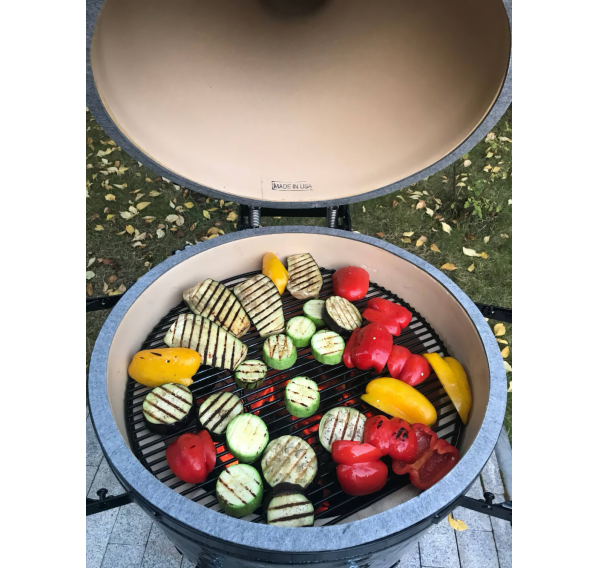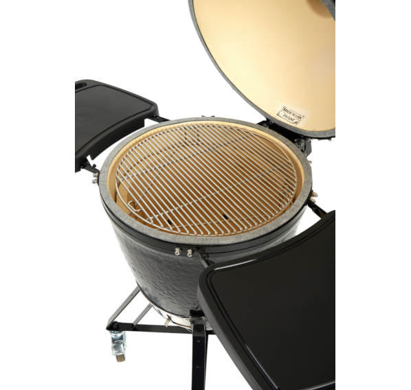 Классическая круглая форма камадо-гриля обеспечивает равномерное распределение тепла и превосходную теплоизоляцию. Премиальная керамика гриля отличается высокой прочностью, долговечностью и устойчивостью к перепадам температур. Керамика не впитывает запахи и легко чистится. Гриль полностью изготовлен в США — каждая деталь проходит строгий контроль качества, что гарантирует надёжность и долгий срок службы. Гриль рассчитан на многолетнюю эксплуатацию в любых погодных условиях.