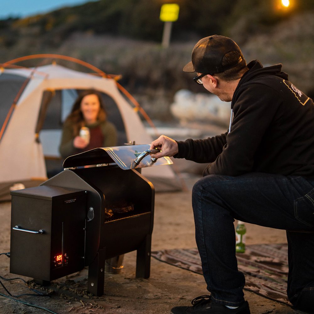 Пеллетный гриль GMG Trek — компактный мобильный гриль на пеллетах, специально разработанный для активного отдыха и выездов на природу. Его удобно брать с собой благодаря небольшим размерам и весу, а также возможности подключения как к бытовой розетке, так и непосредственно к автомобильной электросети (через гнездо прикуривателя или напрямую к аккумулятору). Это позволяет готовить вкусные блюда даже вдали от дома.