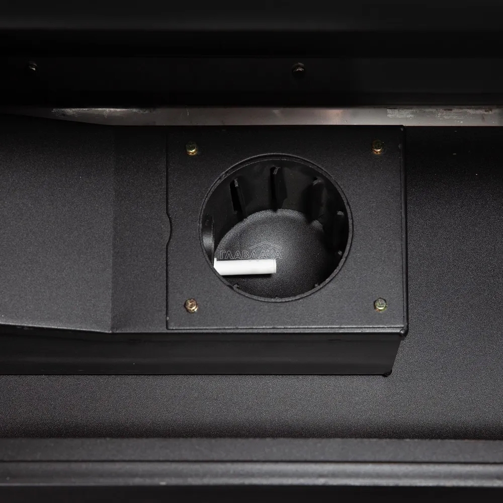 Электродвигатель вращает шнек, и подаёт пеллеты в камеру сгорания, вентилятор нагнетает кислород, чтобы пеллеты горели интенсивнее, пеллеты же отдают жар и приятный аромат блюдам.