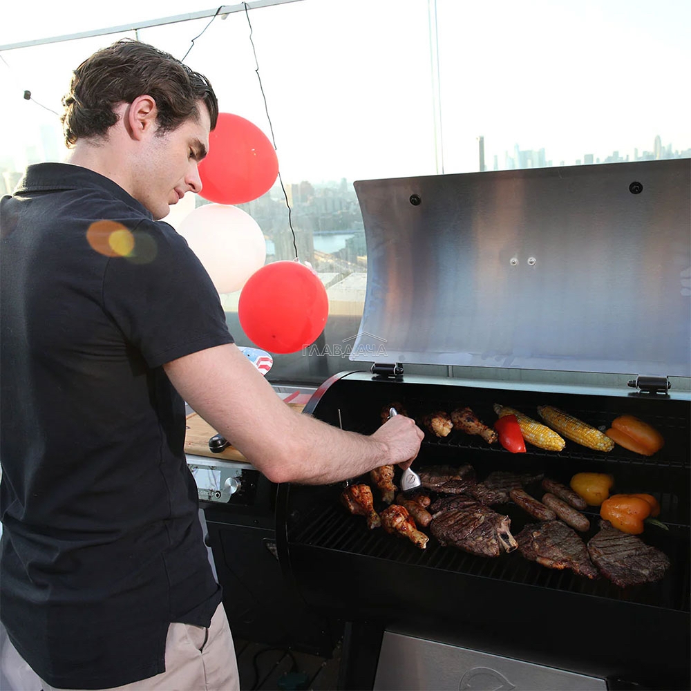 Модель предлагает богатый выбор методов приготовления: копчение, жарка, запекание, выпекание и много другое — в одном гриле. Управлять и следить за приготовлением блюд, можно не вылезая из удобного кресла. Просто подключите цифровой контроллер гриля к приложению по Wi-Fi или Bluetooth — и получайте все данные о приготовлении прямо на Ваш смартфон. Гриль оснащён контейнером на 12,5 кг пеллет с дверцей для сброса пеллет и смотровым окном, системой отвода жира, крышкой из нержавеющей стали, двумя щупами для блюд. У пеллетного гриля Z Grills 700 WiFi надёжный каркас из качественной стали, большие колёса и ролики с фиксаторами. Легко перемещать по участку, легко зафиксировать на месте.