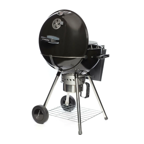 - Премиальные грили с термометром, зольником и вместительной решеткой. Решение для тех, кто любит собирать большие компании и часто жарит мясо. Металлический корпус отлично держит тепло, встроенный термометр помогает контролировать температуру.