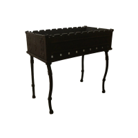 Вместительный гриль-мангал с ветрозащитой. Топка с декоративной накладкой из нержавеющей стали и выдвижным зольником для регулировки интенсивности жара.