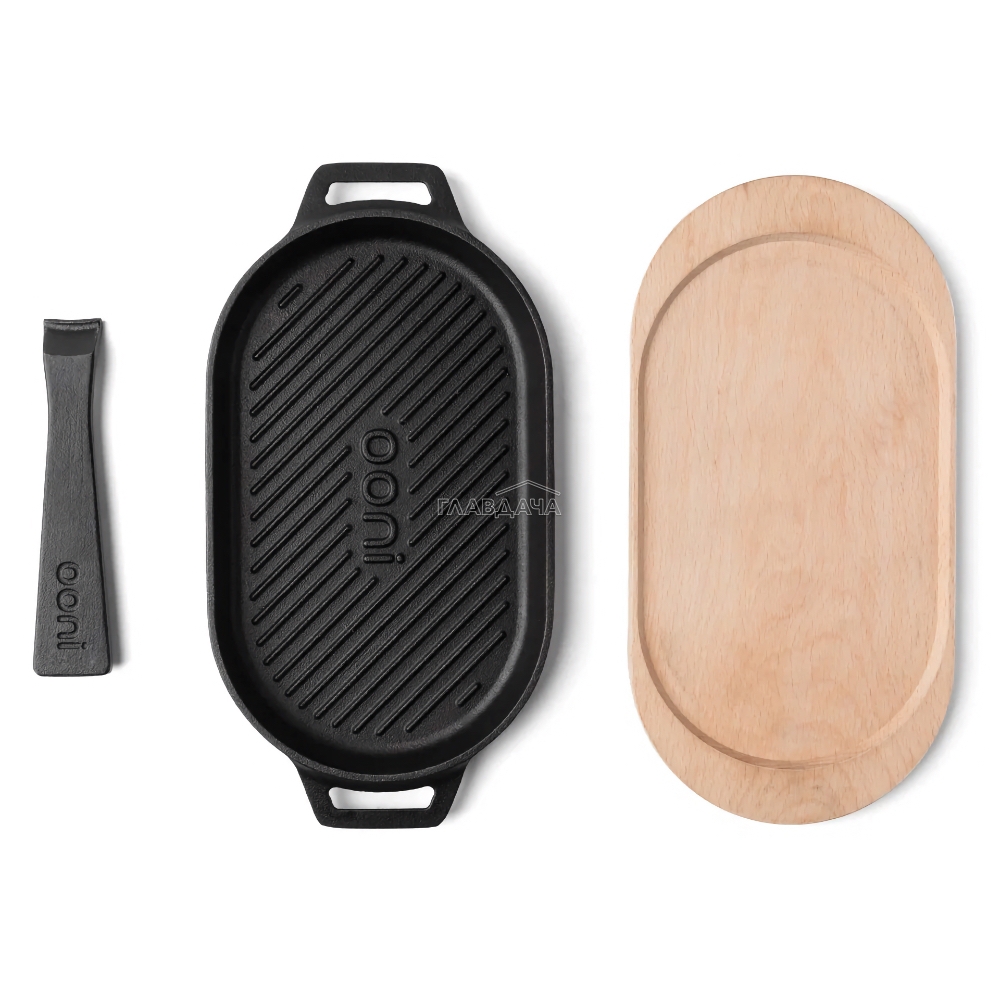 Поприветствуйте Гриззлера! Эта чугунная сковорода-гриль Ooni сочетает в себе универсальность сковороды Ooni и характерный узор решётки-гриль. Мясо и овощи обжаренные на сковороде-гриль — это что-то с чем-то! Съёмная ручка, деревянная подставка идут в комплекте для удобства и лёгкости использования.