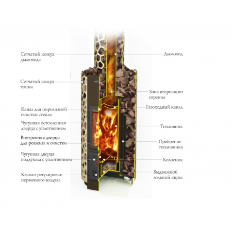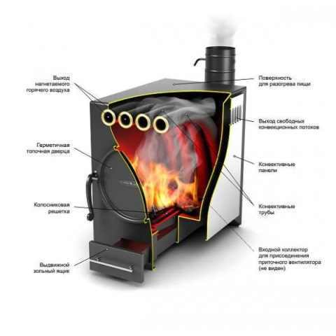 - Дровяные. Классика, создающая живое тепло, не требующая электропитания.