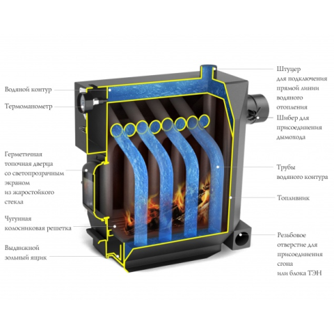 • Комбинированные модели. Поддерживают дрова, брикеты, уголь — идеальны для круглогодичного использования.