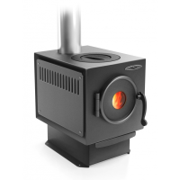 Корпус печи изготавливается из трехмиллиметровой стали, внутри него расположены изогнутые конвекционные трубы, окружающие топку со всех сторон. В нижней части корпуса находятся входные отверстия для забора холодного воздуха, в верхней - для вывода горячего. Устойчивое основание печи удобно крепить к полу.