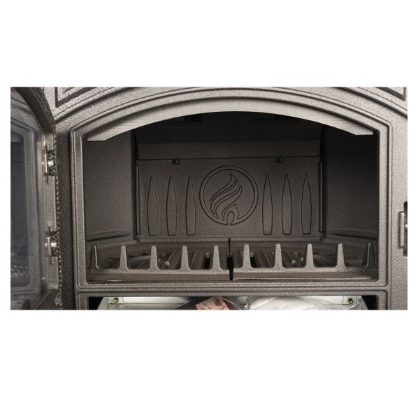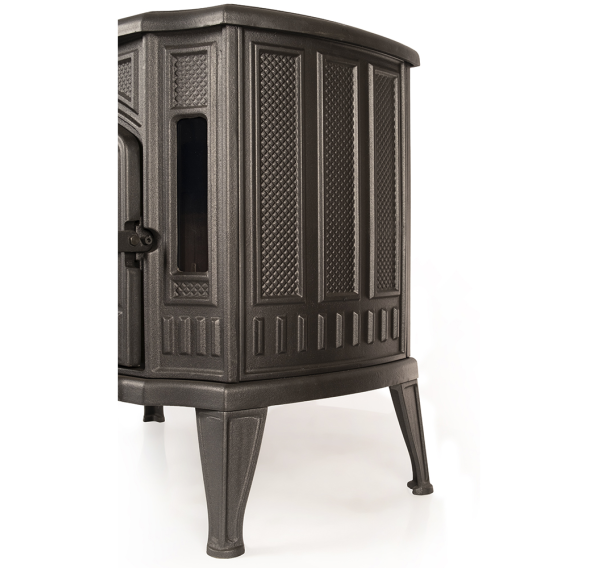 Flamenco полностью изготовлена из чугуна с высоким содержанием хрома, такой материал характеризуется долговечностью и отличной теплоемкостью. Выпуклый геометрический дизайн боковых и верхней панелей увеличивает площадь теплоотдающей поверхности.