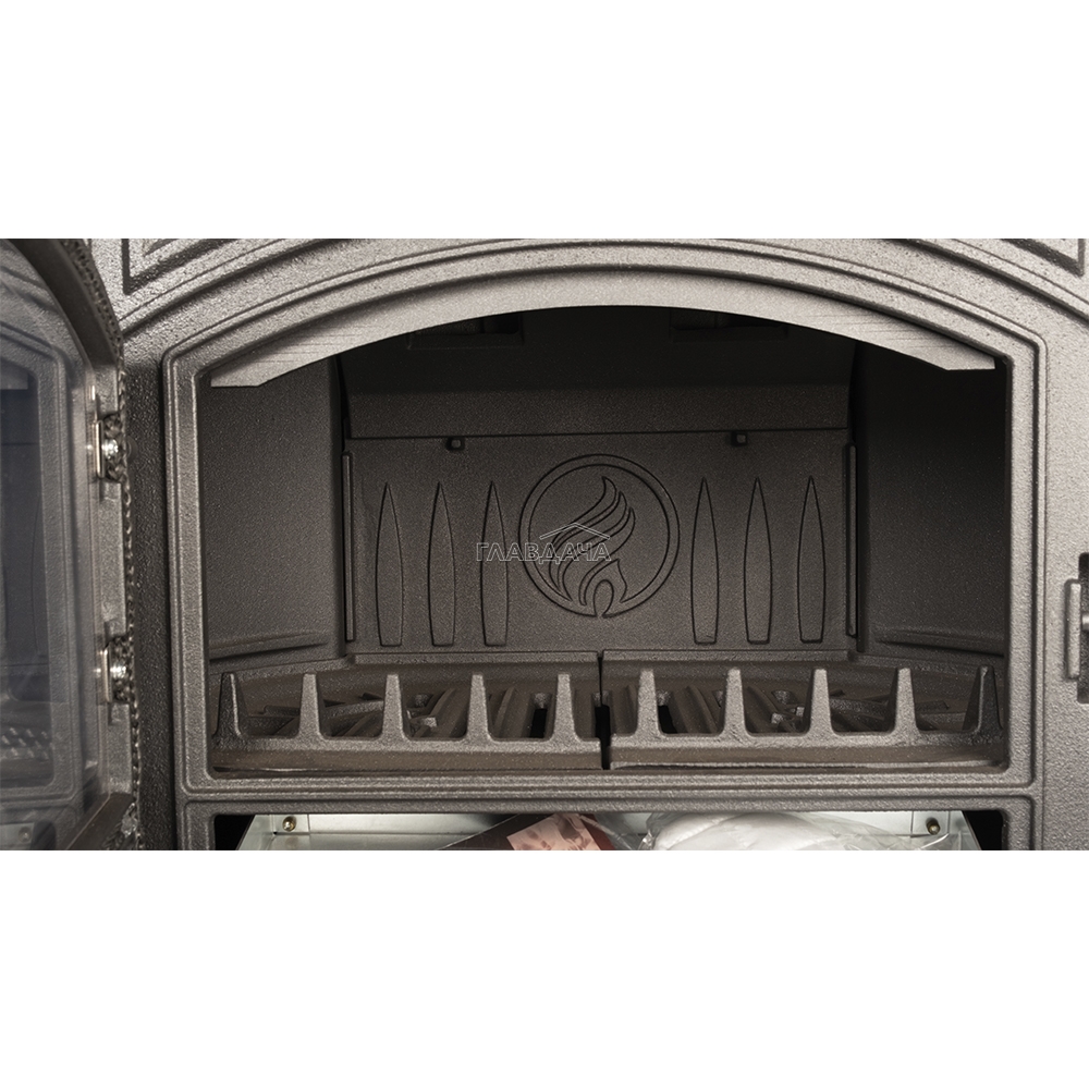 - Задняя стенка топки усилена дополнительной чугунной панелью. Она защищает чугун от перегрева, таким образом увеличивается и общий срок службы печи. При необходимости футеровку можно заменить.