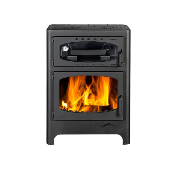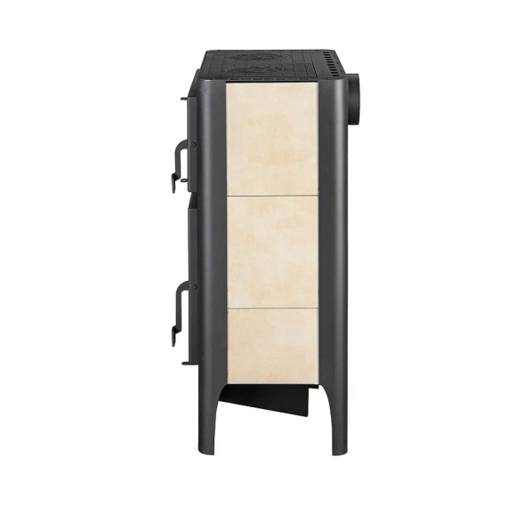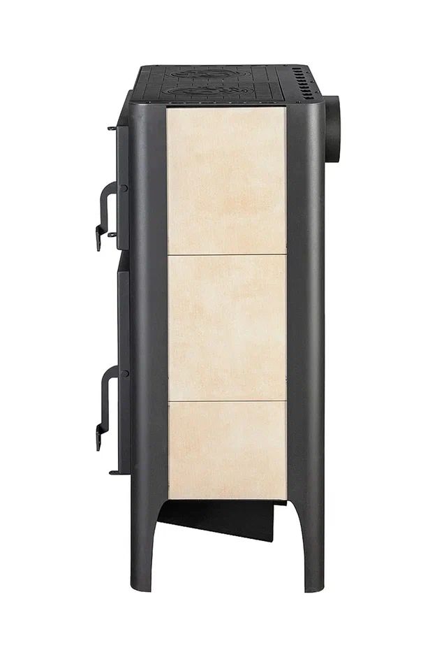 Мощность печи-камина “Бавария Эко” с духовкой и плитой от бренда “Экокамин” составляет 10 кВт, этого достаточно для быстрого нагрева помещения площадью от 40 до 85 кв. м. В экономичном режиме печь поддерживает комфортную температуру до шести часов.