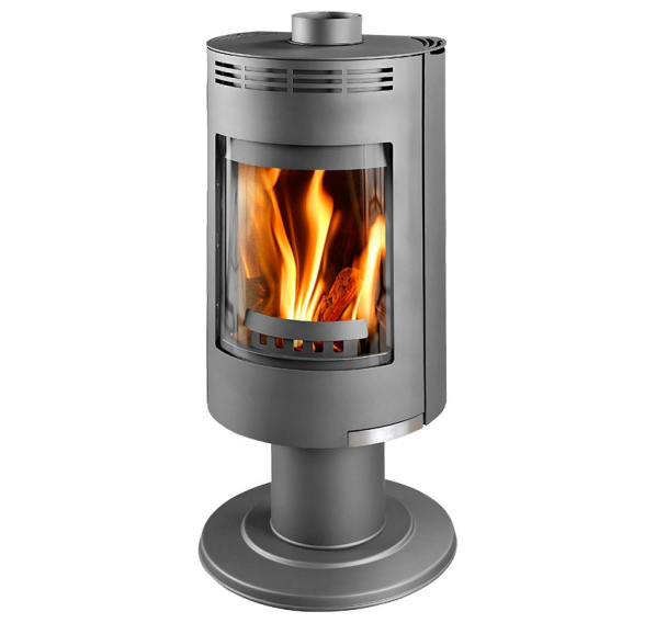 Стальная цилиндрическая печь-камин Andorra в эксклюзивном исполнении от словацкого бренда Thorma сразу привлекает внимание. Изящный компактный корпус на подставке-колонне, полностью окрашенный серебристо-серой термоэмалью приятной шершавой фактуры, впишется в любой, даже самый светлый и минималистичный интерьер. Большое полукруглое стекло дверцы обеспечивает отличный обзор пламени с любого ракурса. Печь рассчитана на обогрев помещения объемом до 200 куб метров, ее можно установить как в углу, так и вдоль стены - дымоход выводится сверху.