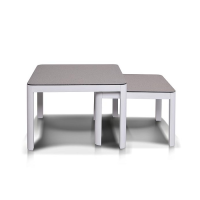 В основе находится алюминиевый каркас, который выступает в качестве устойчивой опоры. Мебель представлена в классическом белом цвете.