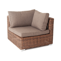 Прямой модуль «Капри», выполненный из круглого искусственного ротанга соломенного оттенка, позволяет использовать не только как самостоятельный элемент, но и быть частью лаунж-зоны, в которую данная модель превосходно интегрируется.