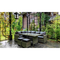 - 3 места — Стол:152х11х91,5 см Диван, пуфы:178х68х86 см Кресло: 85х64х112