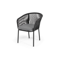 Выполнен из алюминиевого каркаса темно-серого (RAL7024) цвета. Оплетка - современный материал «роуп», которым каркас оплетался вручную.