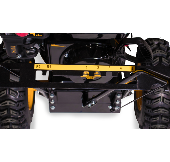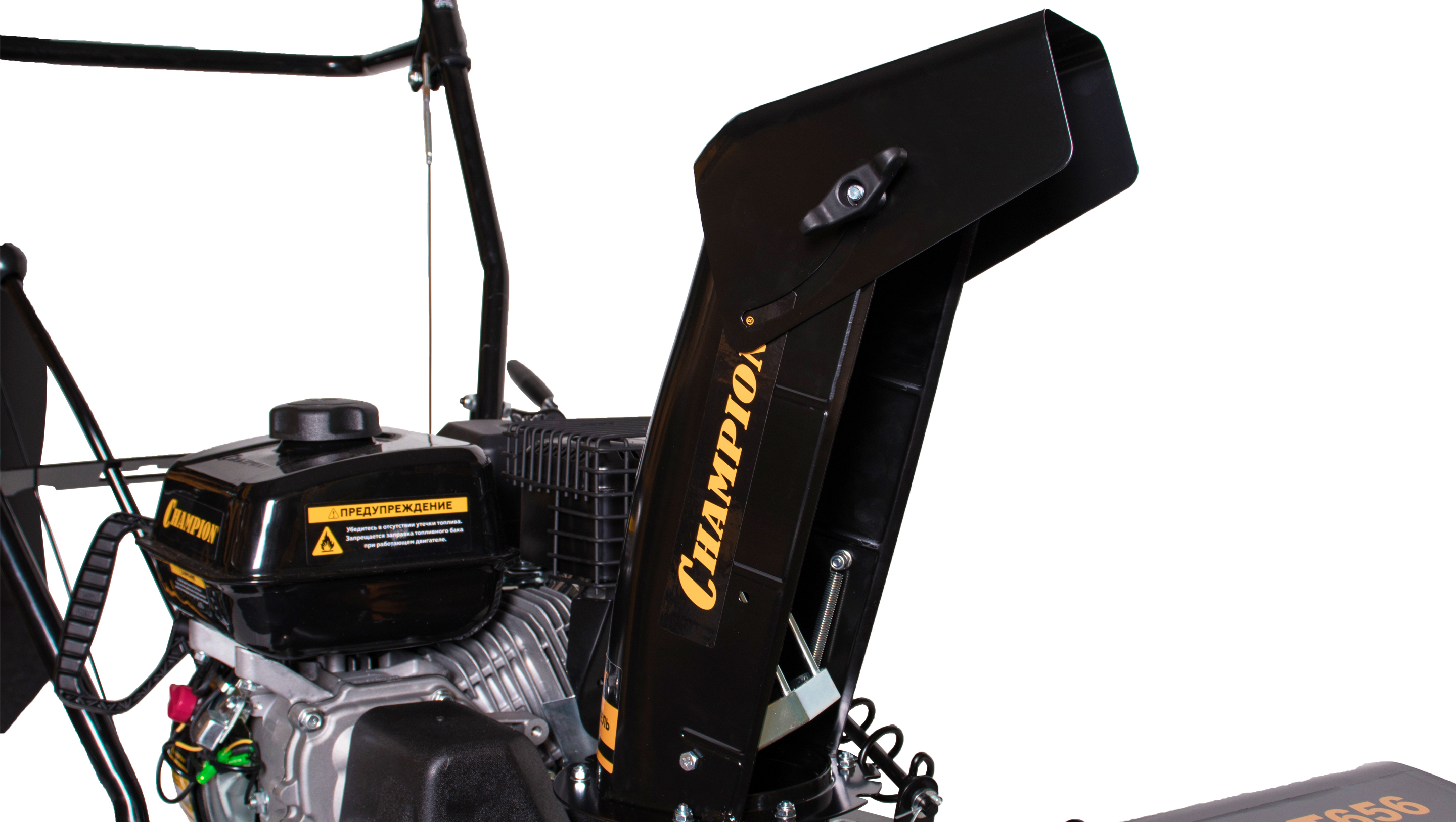 | Регулирование положения желоба выброса снега: |