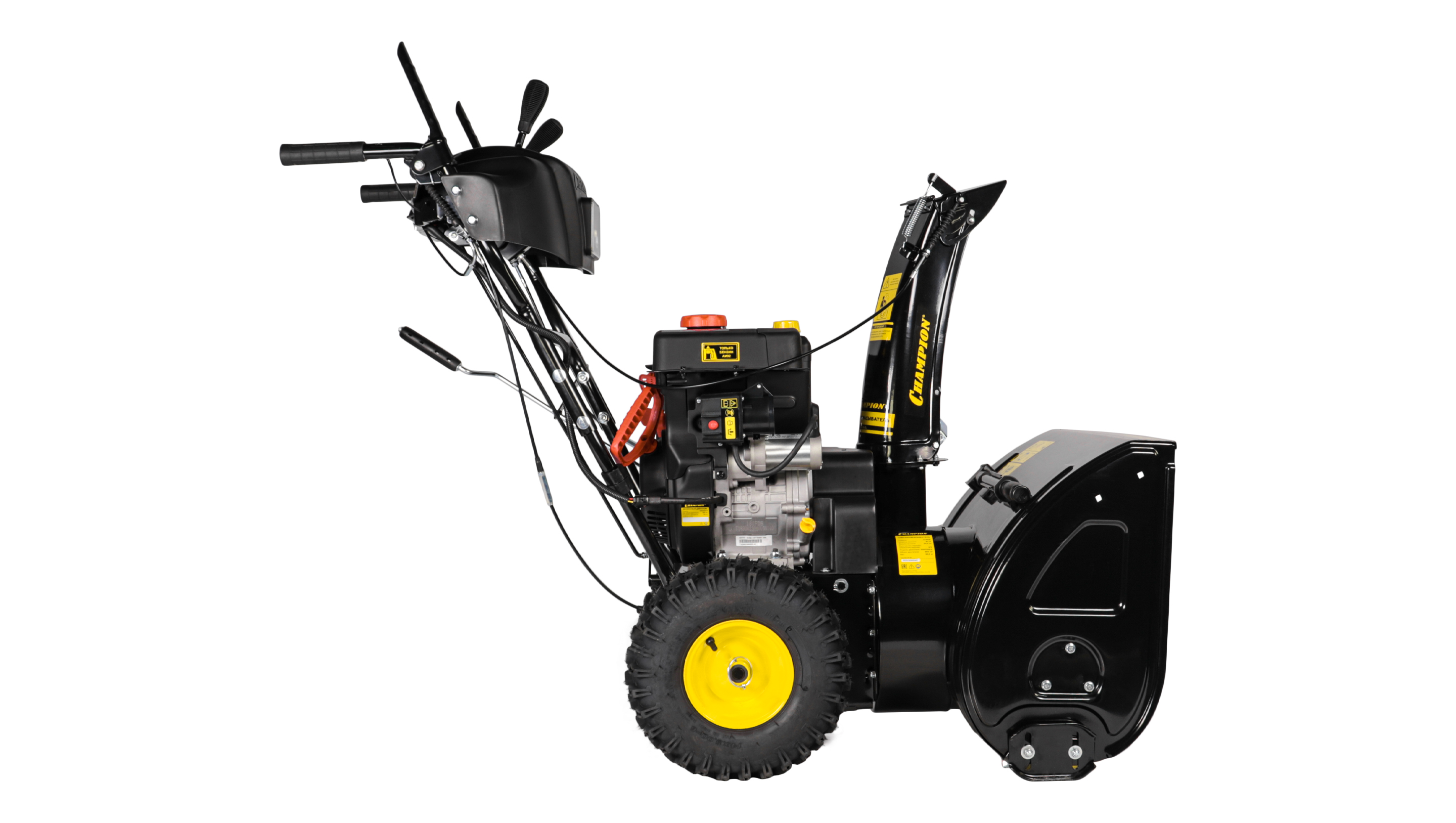| Регулирование положения желоба выброса снега: |