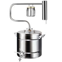 Сухопарник — ёмкость между баком и холодильником, предотвращает попадание вредных примесей в конечный продукт. Широкая горловина бака (11,7 см) даёт возможность с лёгкостью заливать брагу, а также мыть бак после использования. Классический змеевик в проточном холодильнике делает процесс конденсации пара эффективным, и на выходе Вы получаете уже охлаждённый продукт.