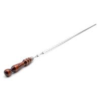 Шампур ручной работы, изготовлен из высококачественной нержавеющей стали толщиной 3 мм с деревянной ручкой, сделанной из древесины лиственных пород (берёза), в процессе эксплуатации не рассыхается и не выделяет смолу.