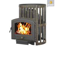Колосниковая решетка в этой печи для бани на дровах отсутствует. Заложенные дрова разжигают сверху. Не имея над собой препятствий, огонь сразу передает тепло каменке. Пламя постепенно спускается, каждый слой дров прогорает полностью. Система Vortex создает вихревые газовые потоки, не дает пламени подниматься в дымоход. Такие инженерные решения обеспечивают печи высокий КПД, топливо расходуется экономно и эффективно.