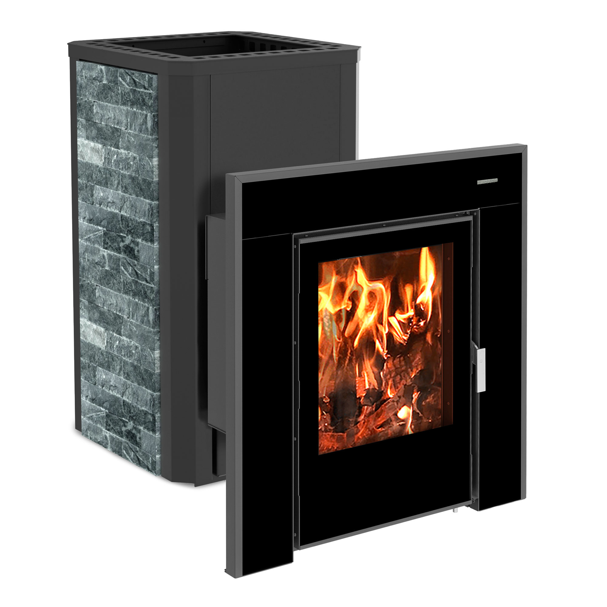 Банная печь с тонированным стеклом талькохлоритом . Печь обеспечивает надёжное, продолжительное тепло, насыщенный пар и безусловный комфорт в бане или сауне.