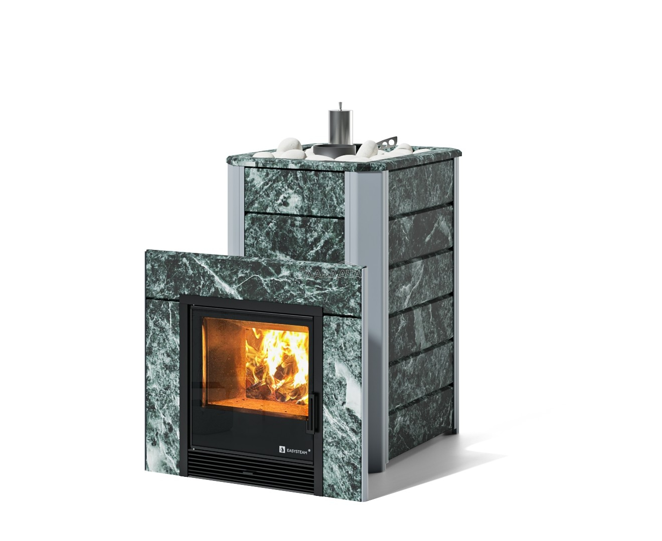 Банная печь “Ялта” из нержавеющей стали от российского бренда “Изистим” разработана для ежедневной эксплуатации. Печь подходит для установки в традиционной русской парной и сауне. Комбинация открытой и закрытой каменок, а также встроенный парогенератор обеспечивают быстрый и равномерный прогрев парной и позволяет получать различные виды пара. Печь “Ялта” может быть поставлена либо в прочном кожухе из конструкционной стали (варианты дизайна: “Хохлома”, “Модерн” в сером или черном цветах), либо в каменной облицовке (на выбор: талькохлорит, змеевик, пироксенит).