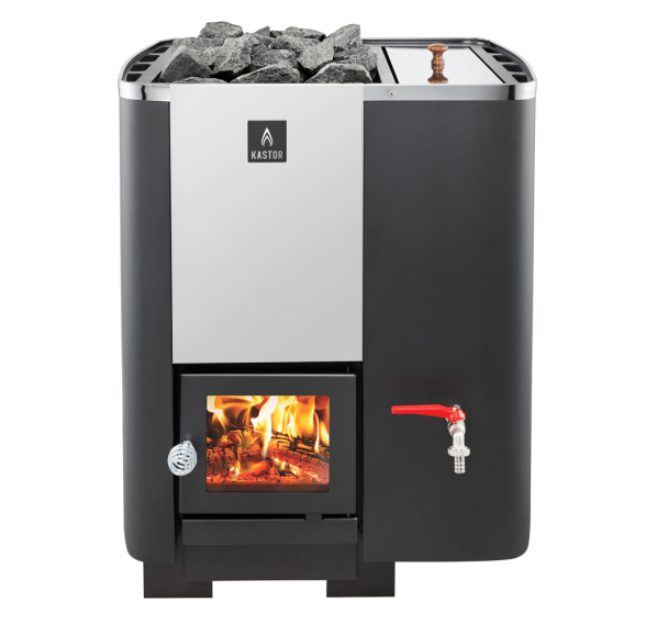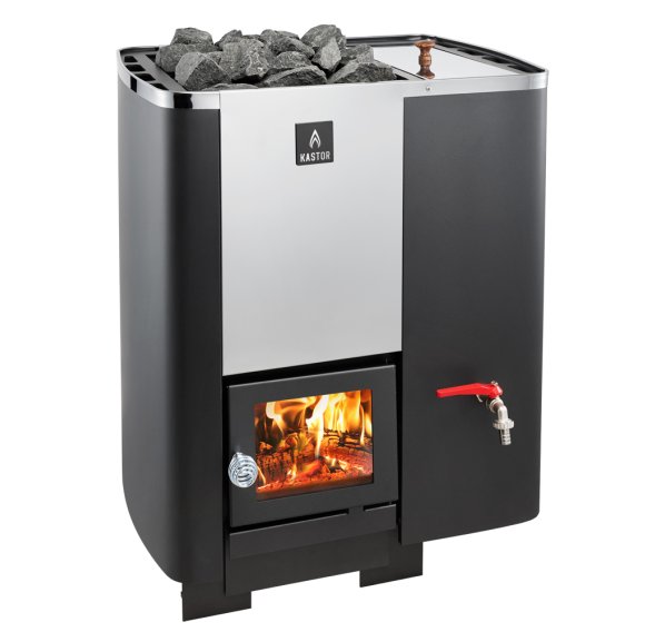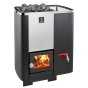 VO - резервуар для воды справа. Элегантная форма и передняя панель печи Karhu, выполненная из полуматовой стали, выгодно подчеркнут интерьер любой сауны. Объем парилки: 30-40 м3