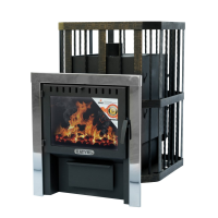 Каменка чёрного цвета. С выносной топкой.. Объем парилки: 8-17 м3.