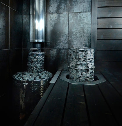 Сетчатый корпус. Стеклянная дверца. Нержавеющая сталь. Ø 550 мм. Объем парилки: 8-18 м3