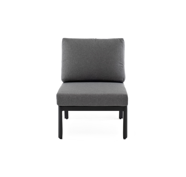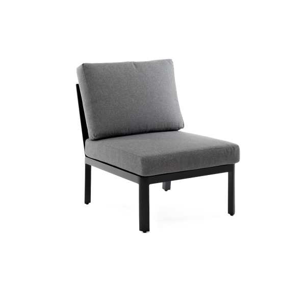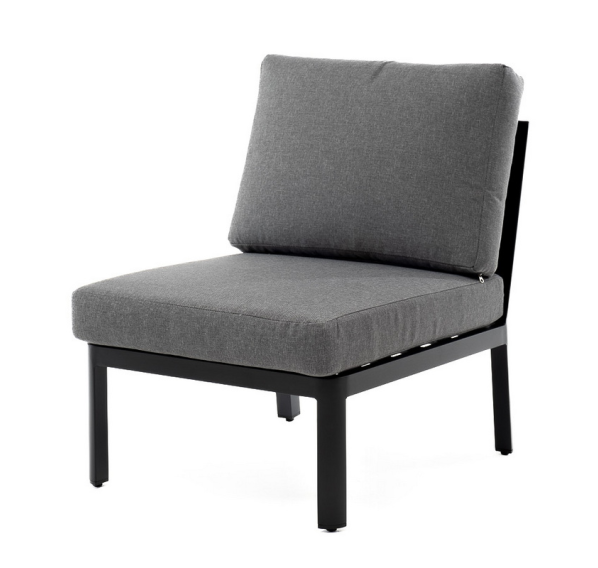 «Париж» модуль диванный центральный, алюминиевый каркас темно-серого цвета. В комплекте с подушками серого цвета со съёмными чехлами. Размер: 600×780×700 мм.