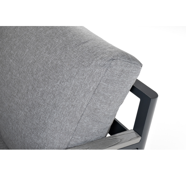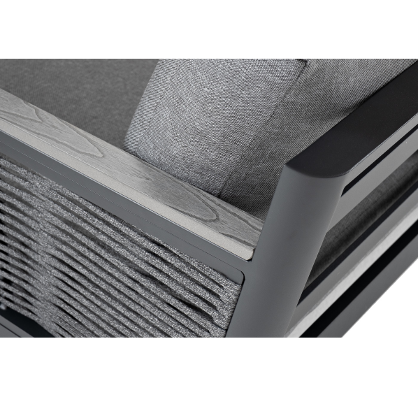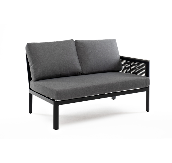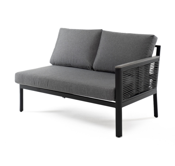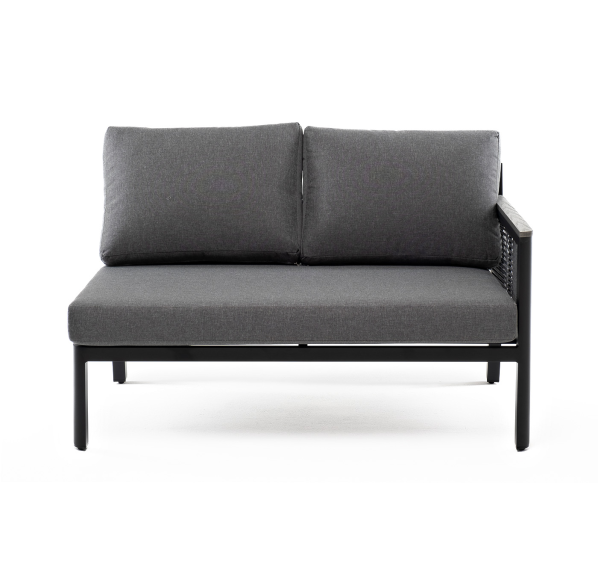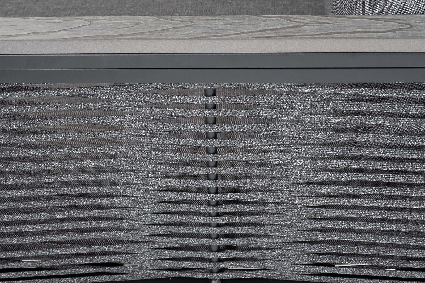 «Париж» модуль диванный левый изготовлен из алюминиевого каркаса темно-серого цвета. Боковины оплетены роупом - эластичными лентами из полиэфирных волокон, цвет серый.