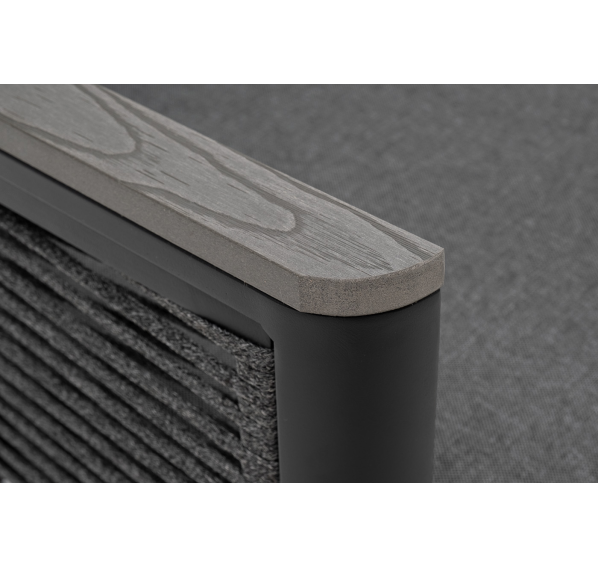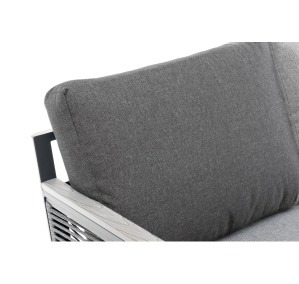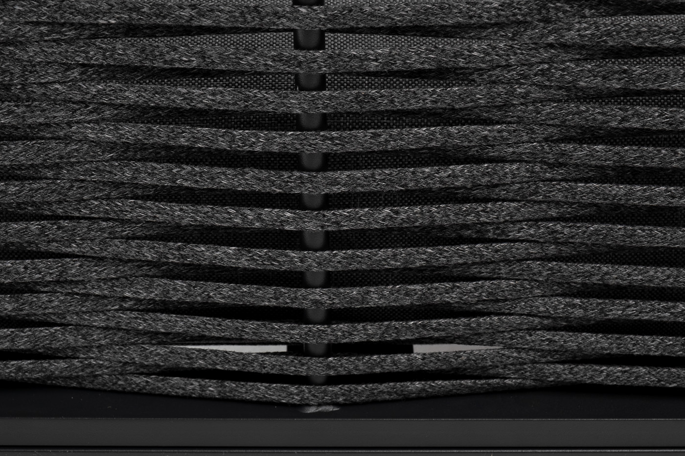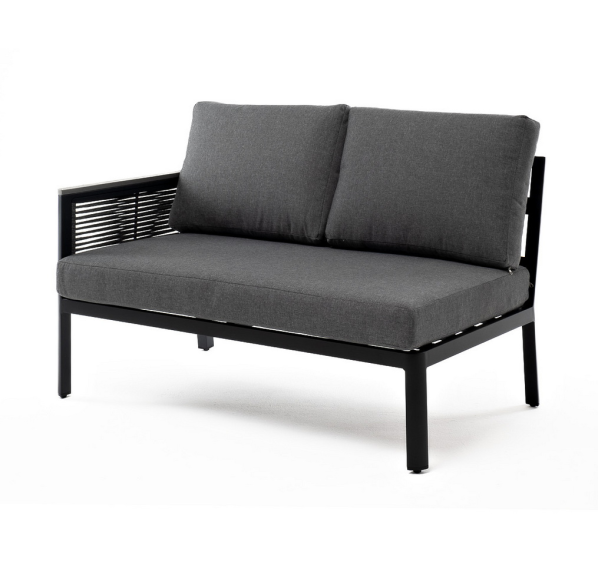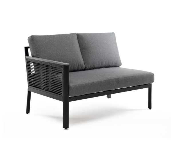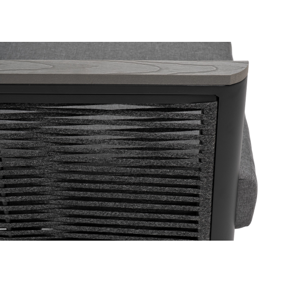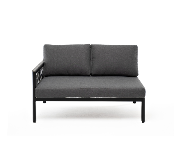 «Париж» модуль диванный правый изготовлен из алюминиевого каркаса темно-серого цвета. Боковины оплетены роупом - эластичными лентами из полиэфирных волокон, цвет серый.