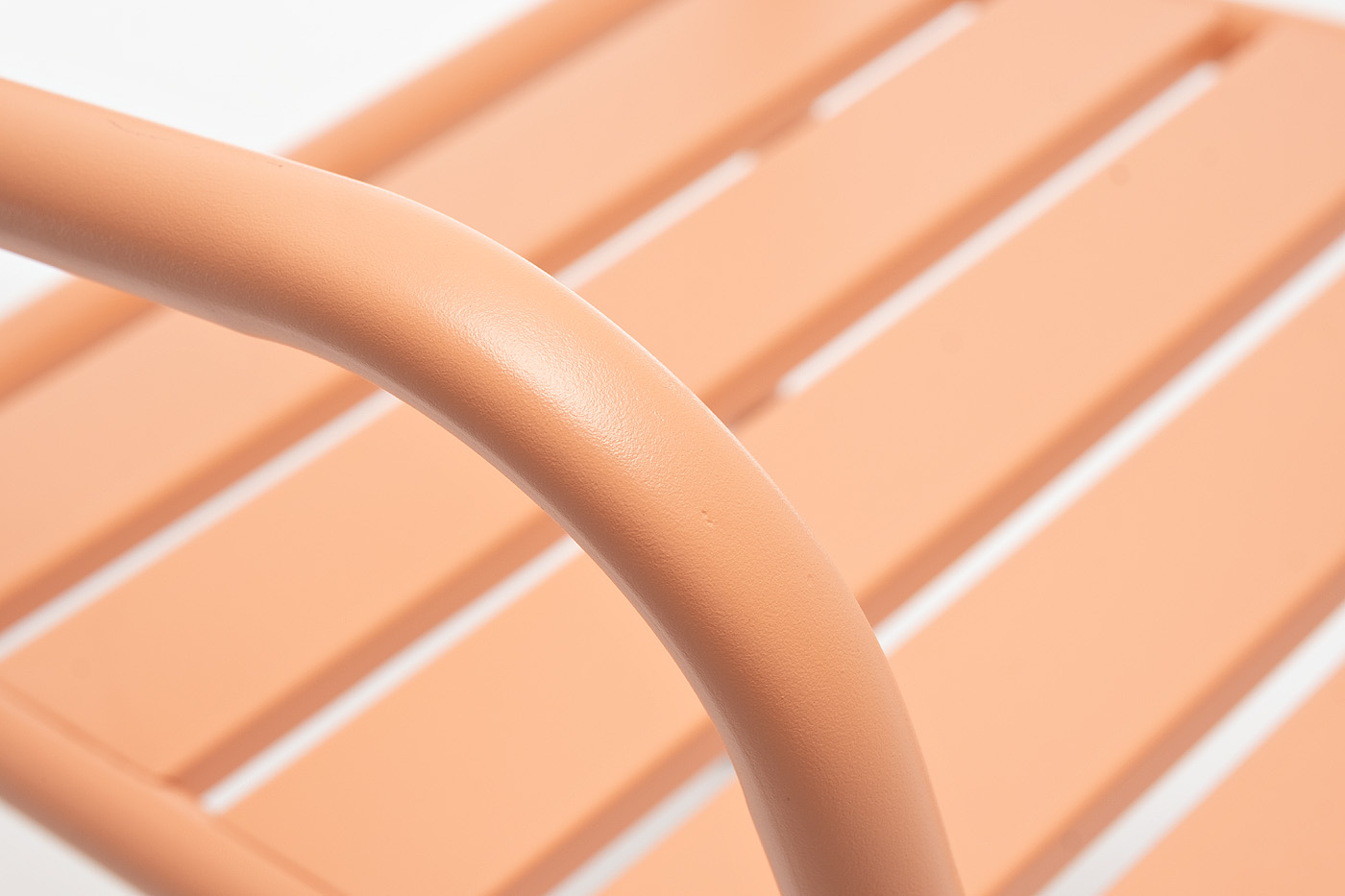 «Дионис» изготовлен из стального каркаса, окрашенного порошковой износостойкой краской светло-кораллового цвета.