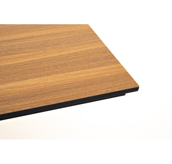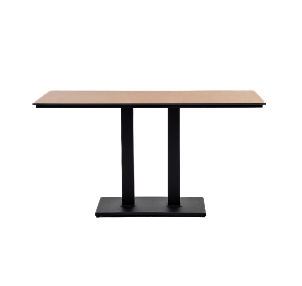 Двойное подстолье изготовлено из металла, столешница - из высококачественного монолитного компакт-пластик HPL, толщиной 12 мм, цвет «дуб».