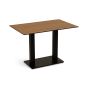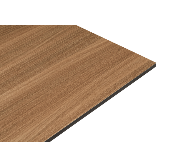 Двойное подстолье изготовлено из стали, столешница - из высококачественного монолитного компакт-пластик HPL, толщиной 12 мм, цвет «дуб».