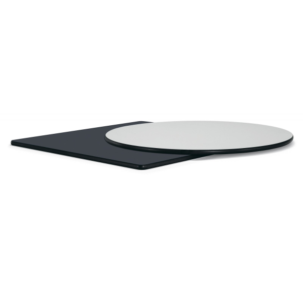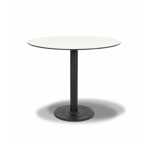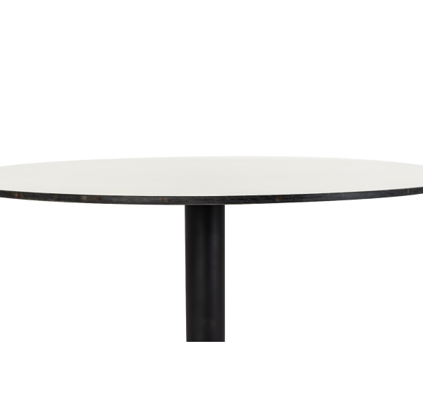 Круглый стол «Каффе» со столешницей из HPL молочного цвета. Это высококачественный ударопрочный компакт-пластик, обладающий низкой пористостью, что предотвращает впитывание жидкостей, поэтому столы из HPL идеально подходит для обеденных зон. Толщина столешницы – 12 мм.