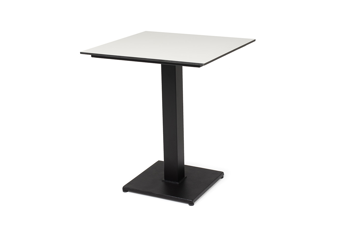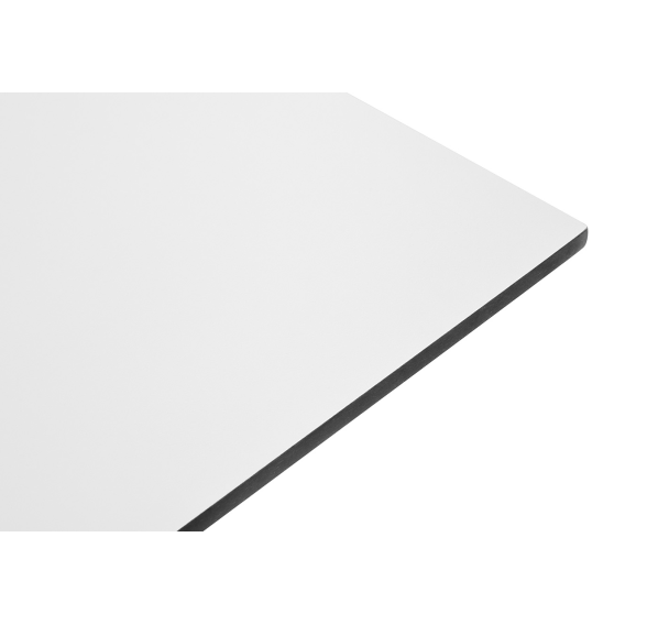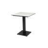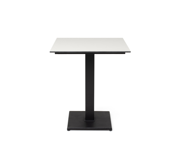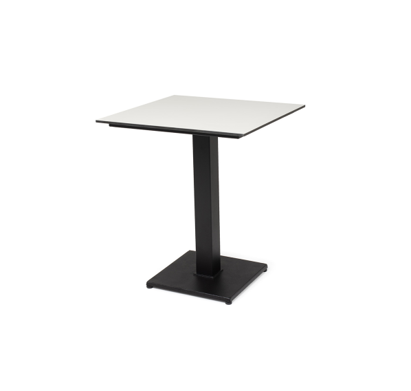 Современный стол «Каффе» с квадратной столешницей, выполненной из высококачественного монолитного компакт-пластика HPL, толщиной 12 мм. Цвет поверхности стола – молочный.